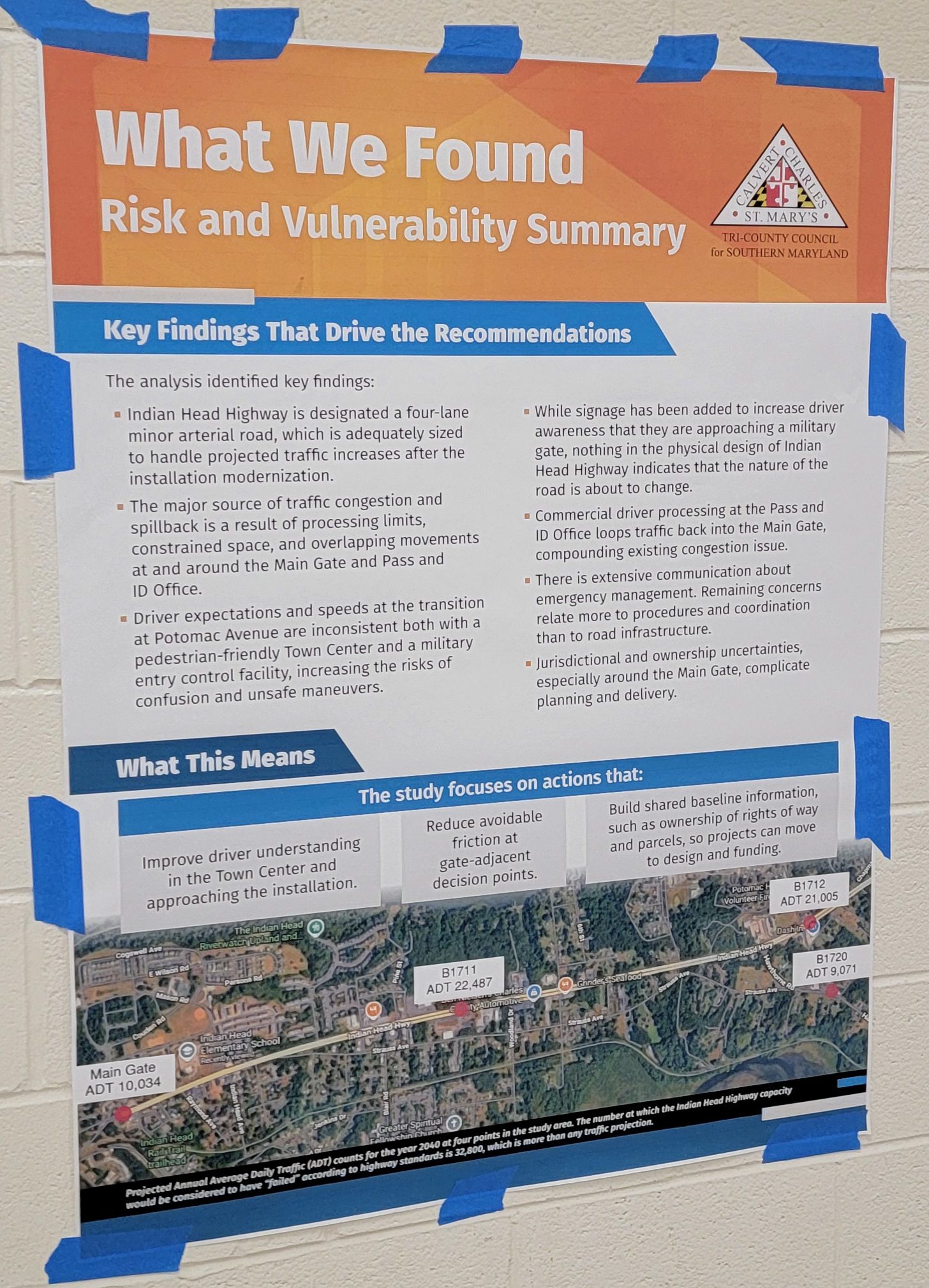 On February 11, neighbors gathered at the Village Green Pavilion to review draft findings from an outsourced transportation study focused on MD Route 210 and the road network that connects our town to Naval Support Facility Indian Head. The study matters because this corridor is not just a commute route. It is where daily life, local business access, school traffic, emergency response, and a major national security mission intersect.
